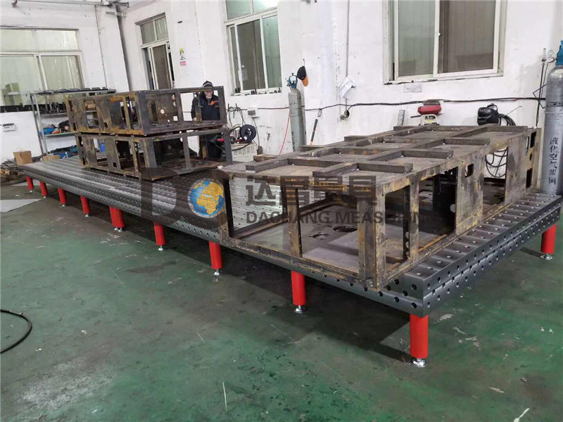 三維焊接平臺(tái)不僅僅是一個(gè)簡(jiǎn)單的臺(tái)子,它的工作面跟上面的孔都是有精度的,工作面的平面度為每米10絲,孔距的誤差是±0.05mm,孔直徑的誤差是+0.1,只有各項(xiàng)精度都達(dá)到標(biāo)準(zhǔn)才能保證焊接的誤差。