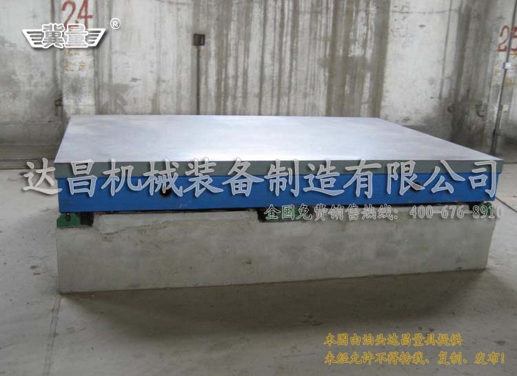 一般鑄鐵平臺的調(diào)平都是采用方型的調(diào)整墊鐵,根據(jù)平臺的重量及使用來確定所需墊鐵的規(guī)格。如一塊2000*4000的鑄鐵平臺,一般至少需要用到六塊墊鐵,墊在鑄鐵平臺的四角及4米方向兩側(cè)的中間位置,鑄鐵平臺及工件重量一共為5T的重量時,至少要選用規(guī)格為200*100*60的S83型調(diào)整墊鐵,當(dāng)然大于此規(guī)的墊鐵也是可以的。具體調(diào)平方法為:吊裝平臺,把六塊墊鐵放置好,裝鑄鐵平臺放置在墊鐵上,調(diào)整墊鐵,使各墊鐵均勻胎受力,用水平測量儀器(水平尺或電子水平儀)檢測鑄鐵平臺水平狀況,調(diào)整墊鐵上面的螺栓,直到符合水平位置。初次調(diào)平后,需靜置12小時,然后再次檢測,如不合格需進(jìn)行再次調(diào)整,合格后方可使用。鑄鐵平臺需要根據(jù)使用情況定制進(jìn)行維護(hù),一般維護(hù)周期為6-12個月。