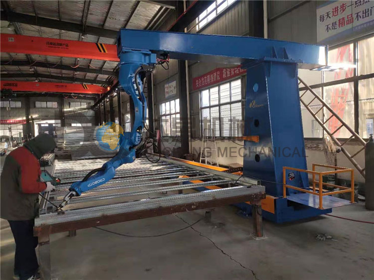 我司設(shè)計(jì)的集裝箱焊接吊臂機(jī)器人,采用懸臂增加焊接機(jī)器人的行程,可用于多種鋼結(jié)構(gòu)集裝箱焊接工作。