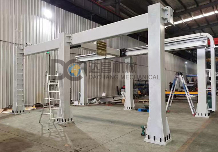 機械手桁架是一種建立在直角X、Y、Z三坐標系統(tǒng)基礎上, 對工件進行工位調(diào)整,或?qū)崿F(xiàn)工件的軌跡運動等功能的全自動工業(yè)設備。 通過控制器對各種輸入信號進行分析處理,做出邏輯判斷后,對各個輸出元件(如電機)下達執(zhí)行命令,完成所需運動。 由于結構特點,設備可用負載大(終端負載>2000KG),可用立柱跨距大(Y行程>10m)。 根據(jù)需要,同時可搭載蕞多四個Y軸,實現(xiàn)設備效率的蕞大化。