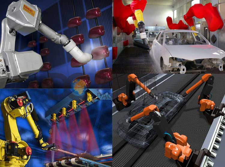 噴漆機(jī)器人是可進(jìn)行自動(dòng)噴漆或噴涂其他涂料的工業(yè)機(jī)器人,主要由機(jī)器人本體、計(jì)算機(jī)和相應(yīng)的控制系統(tǒng)組成,液壓驅(qū)動(dòng)的噴漆機(jī)器人還包括液壓油源,如油泵、油箱和電機(jī)等。多采用5或6自由度關(guān)節(jié)式結(jié)構(gòu),手臂有較大的運(yùn)動(dòng)空間,并可做復(fù)雜的軌跡運(yùn)動(dòng),其腕部一般有2~3個(gè)自由度,可靈活運(yùn)動(dòng)。