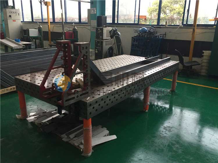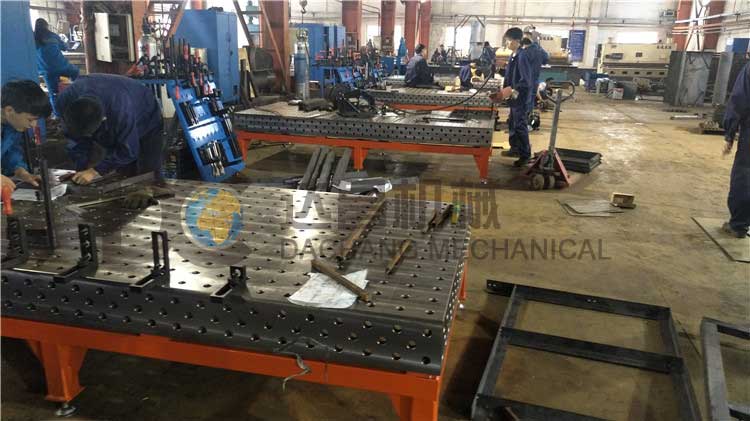 ①基礎(chǔ)件:如方形、矩形、圓形基礎(chǔ)板等,用作夾具工裝臺(tái). 工作臺(tái)的五個(gè)工作面都有100mm×100mm(D28系列)或50mm×50mm(D16系列)的帶有網(wǎng)格標(biāo)注的孔。其五個(gè)面的平面、平行、垂直公差精度以及孔與孔的位置精度都是非常高的,保證在臺(tái)面上的定位和臺(tái)面與其它模塊之間的組合都具有足夠的使用精度要求?;A(chǔ)臺(tái)面的尺寸從1000mm×1000mm到4000mm×2000mm可以任意選擇,非標(biāo)尺寸可以訂做。如果臺(tái)面與臺(tái)面組合后的精度要求很高,則可以使用導(dǎo)軌將它們連接起來。